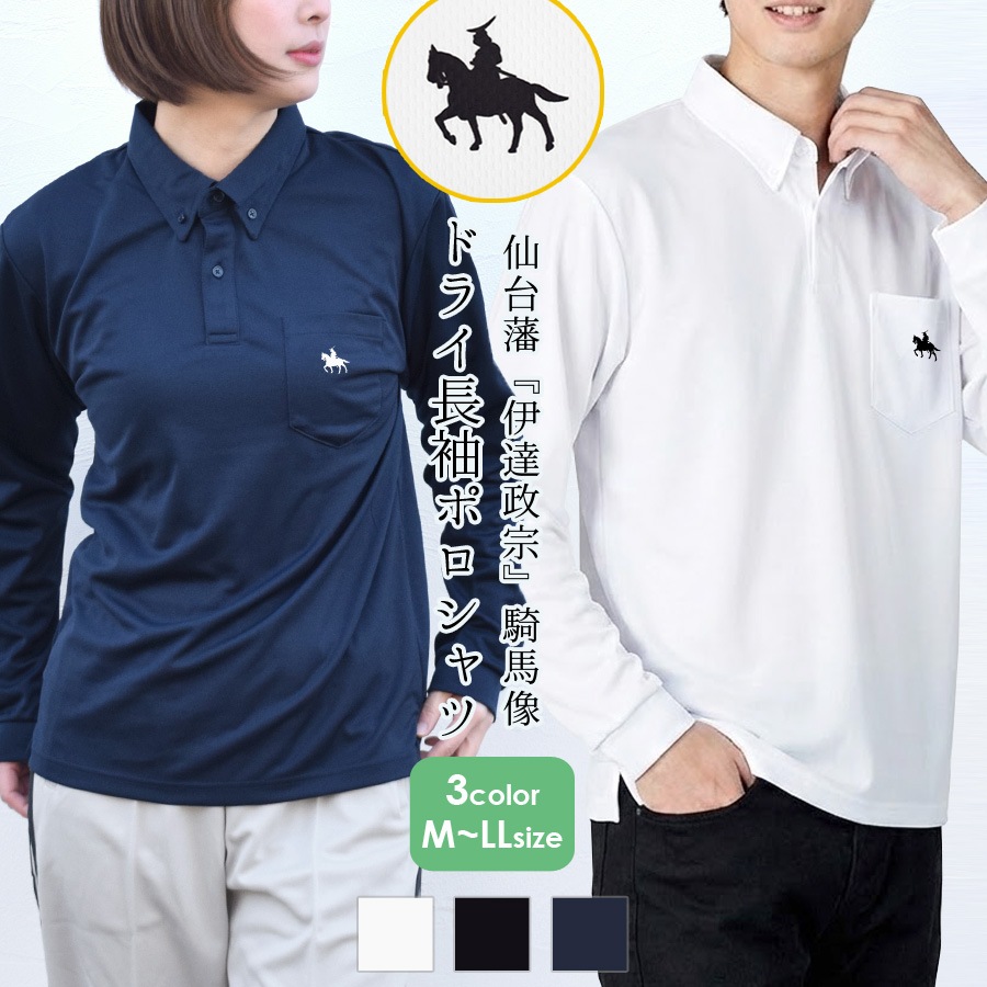 【ポロシャツ Tシャツ 長袖 伊達政宗 レディース メンズ トップス ドライ ボタンダウン UVカット 吸水 速乾 胸ポケット スリット入り ワンポイント 政宗 グッズ 仙台藩 騎馬像 馬 午年 ユニセックス メッシュ さらさら 快適 ゆったり 大きいサイズ シンプル 仕事着 ギフト 武将 歴史 歴女 戦国 独眼竜 仙台 宮城 東北 ご当地 お土産 date masamune UPF20 地域限定 仙台土産 おもしろ ユニーク sendai miyagi tohoku 歴史人物】